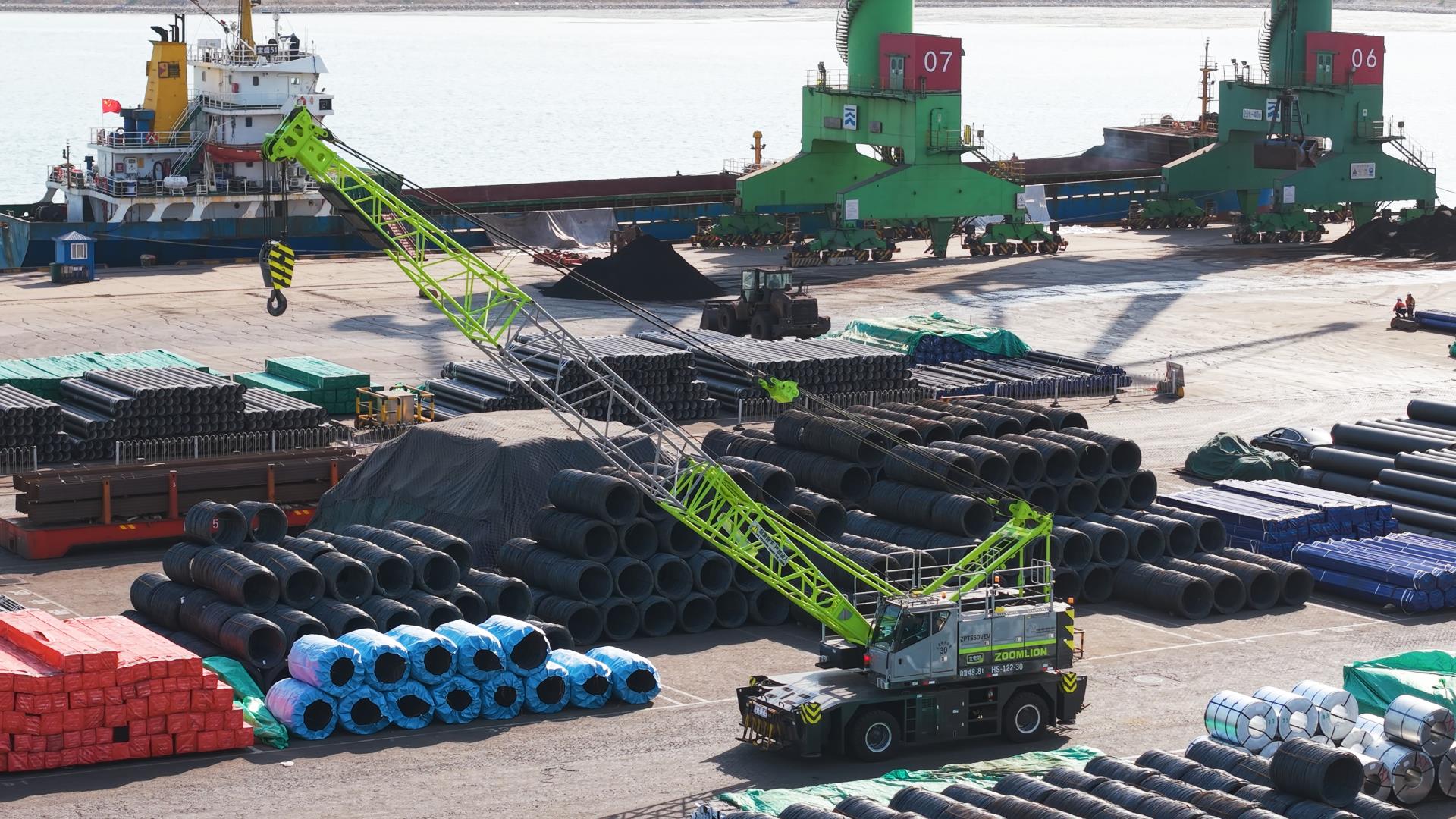 △中联重科打造的全球首款纯电驱港口轮胎起重机