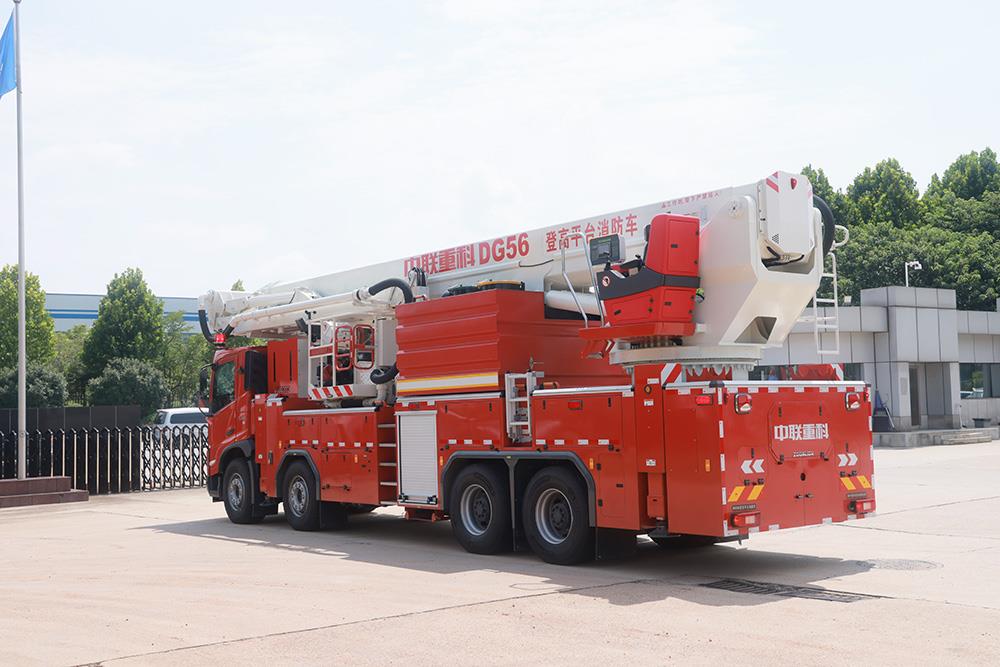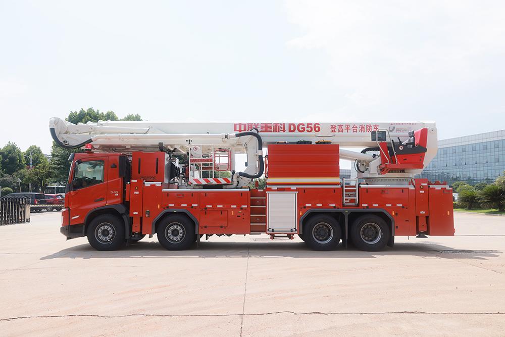 中联牌DG56C6型登高平台消防车,采用5+2双伸缩臂结构,配置大流量水力系统、智能控制系统及大功率底盘系统,整车灭火能力及高空救援能力强悍,动作平稳快捷,操作简便。适用于城镇、港口、工矿企业高层建筑以及石油、化工、油罐、仓库等大型建筑灭火及救援。