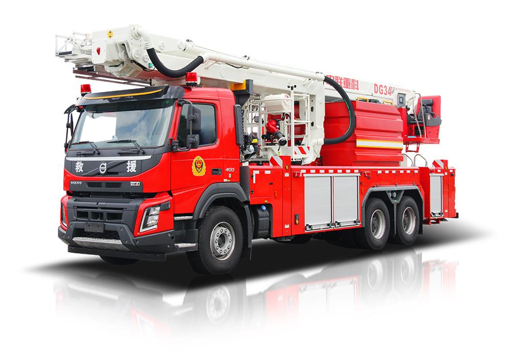 中联重科DG34型登高平台消防车,结合国际上消防车的先进理念和消防实战经验创新设计而成,具备强大的高空救援和消防灭火能力,整车性能优越,快速高效,操作性、安全性及智能化控制处于国内领先水平。